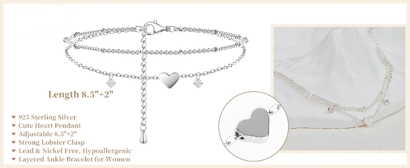 【Material Safety Layered Anklets】: Our anklets for Women are made of high quality copper exterior plated with 925 sterling silver, lead and nickel free, hypoallergenic, not easy to fade and tarnish, safe and comfortable to wear, no need to worry about it rusting or causing irritation.